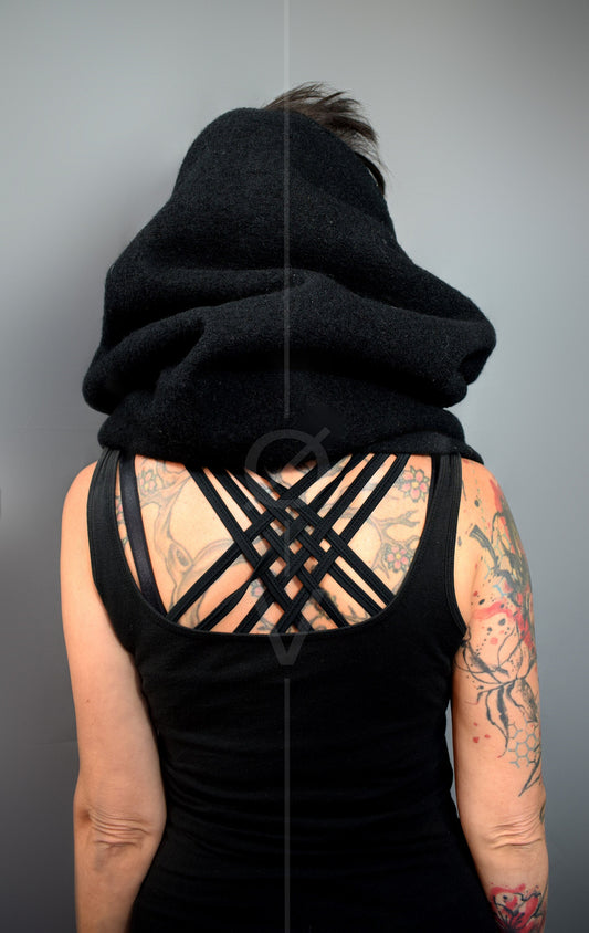 Black Wool snood//cowl//scarf + Futuristic Dystopian Goth.