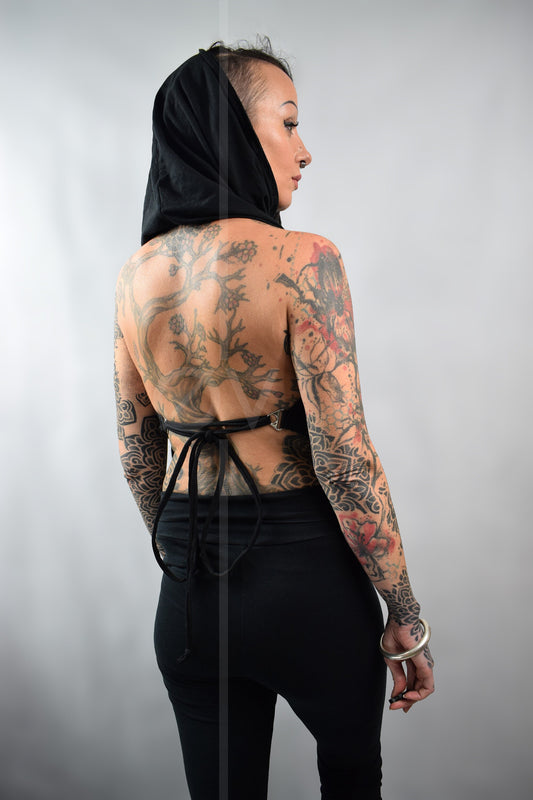 Hooded Backless Cowl Top // Hemp Jersey // Metal Details // Black // Festival // hippy // ECO