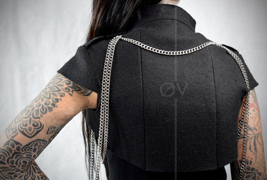 Cropped 100% Wool Jacket // Military stye Chain detail // Goth Minimalist Futuristic // Blazer Bolero.