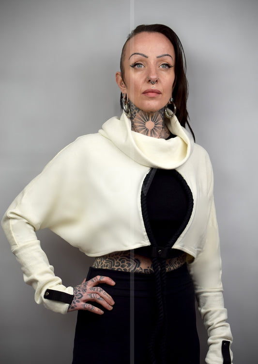 Cropped Cowl Neck Hemp Sweatshirt/Jumper with rope detailing // Techwear/ Goth