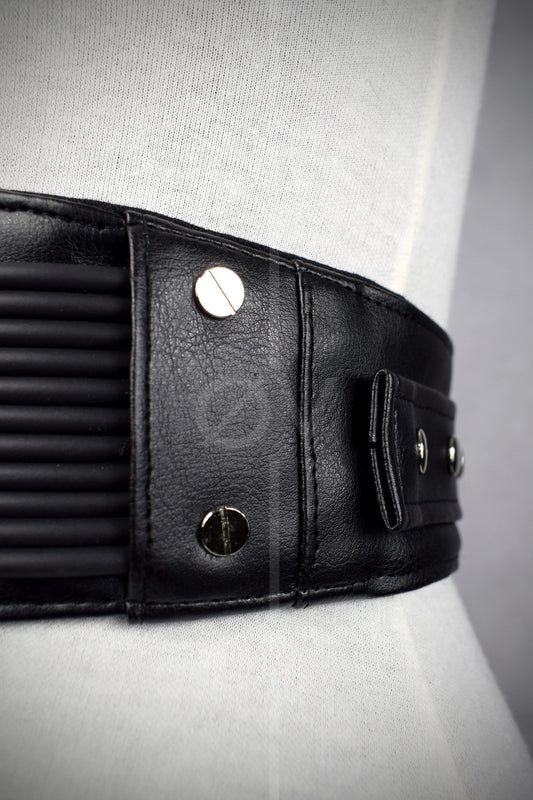Adjustable Black Vegan Leather Wide Waist Belt/Corset With Tubing Details // Goth/ Industrial