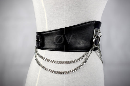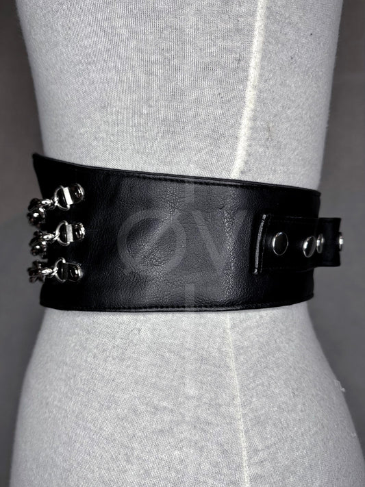 Adjustable Black Vegan Leather Wide Waist Belt/Corset With Chain Details // Goth/ Industrial