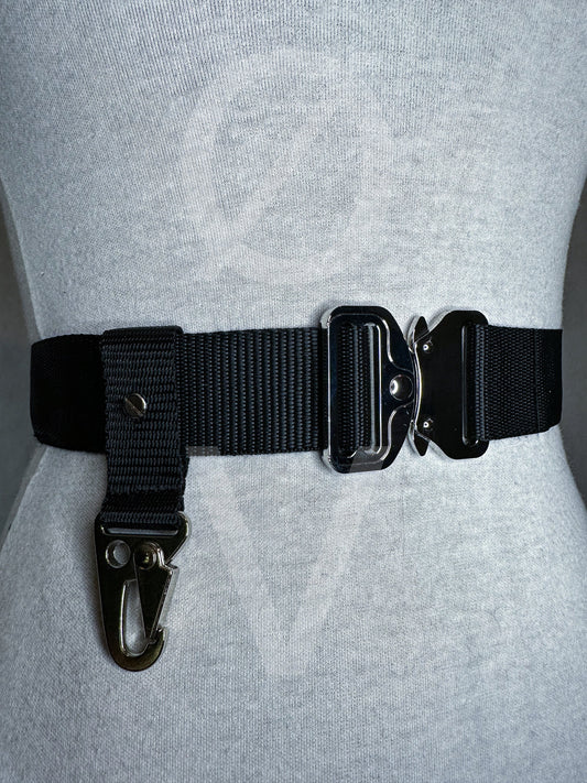 Black Techwear Belt// Sturdy black webbing/ metal hardware/utility clip//goth/streetwear//