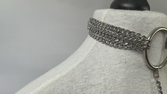 Curb Chain O Ring Choker Layered Dangle Bird Skull Necklace //Gothic Alternative Avant Garde Jewellery